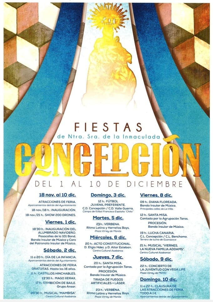 El jueves 7 de diciembre, tendrá lugar el día grande de las fiestas con misa cantada, por la Agrupación folclórica Taros, en la Iglesia de Nuestra Señora de La Inmaculada Concepción, en la Villa de Valverde, seguida de una procesión de la imagen, por las calles de la capital acompañada por la Banda Insular de Música, fuegos artificiales y espectáculo láser. La jornada finalizará con una Verbena en la plaza Virrey de Manilla de la capital herreña.