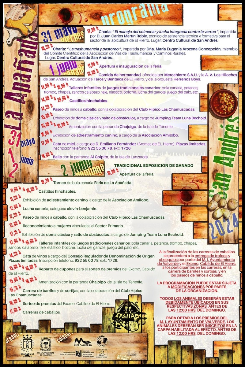 El domingo 2 de junio, la feria arrancará a las 10:00 horas con la tradicional exposición de ganado, con una extensa muestra de las mejores cabezas de ganado por parte de los criadores herreños. Por la tarde, la institución insular hará un reconocimiento a varias mujeres vinculadas al sector primario y entregará distintos obsequios a sorteos promovidos a lo largo de las jornadas. La programación también incluye carreras y espectáculos con caballos.