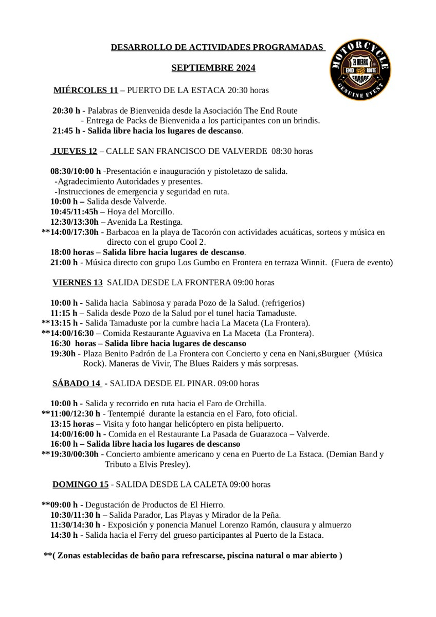 10:00 h – Salida desde Valverde. 10:45/11:45h. – Hoya del Morcillo. 12:30/13:30h. – Avenida La Restinga.