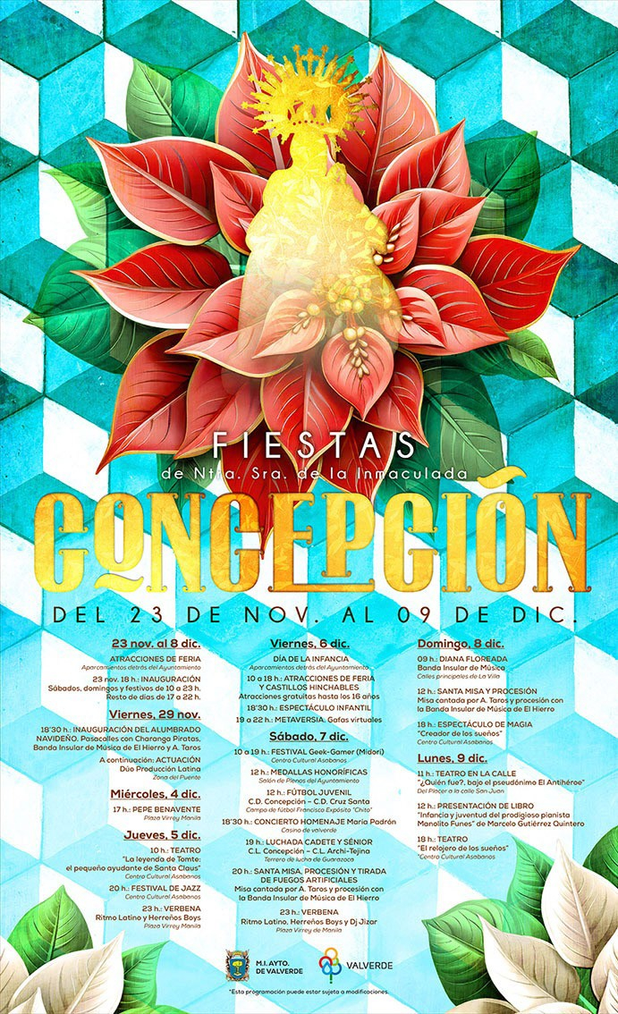 El 8 de diciembre, se celebrará el día grande de las fiestas con una Diana floreada, Misa cantada y Procesión de la imagen con la Banda Insular de Música.
