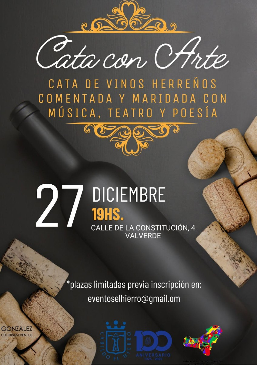 Sumérgete en una experiencia única en esta cata comentada, en la que maridaremos los vinos herreños con música en vivo, teatro y poesía, creando una experiencia sensorial inolvidable, en medio de la mejor muestra de arte de la Isla.