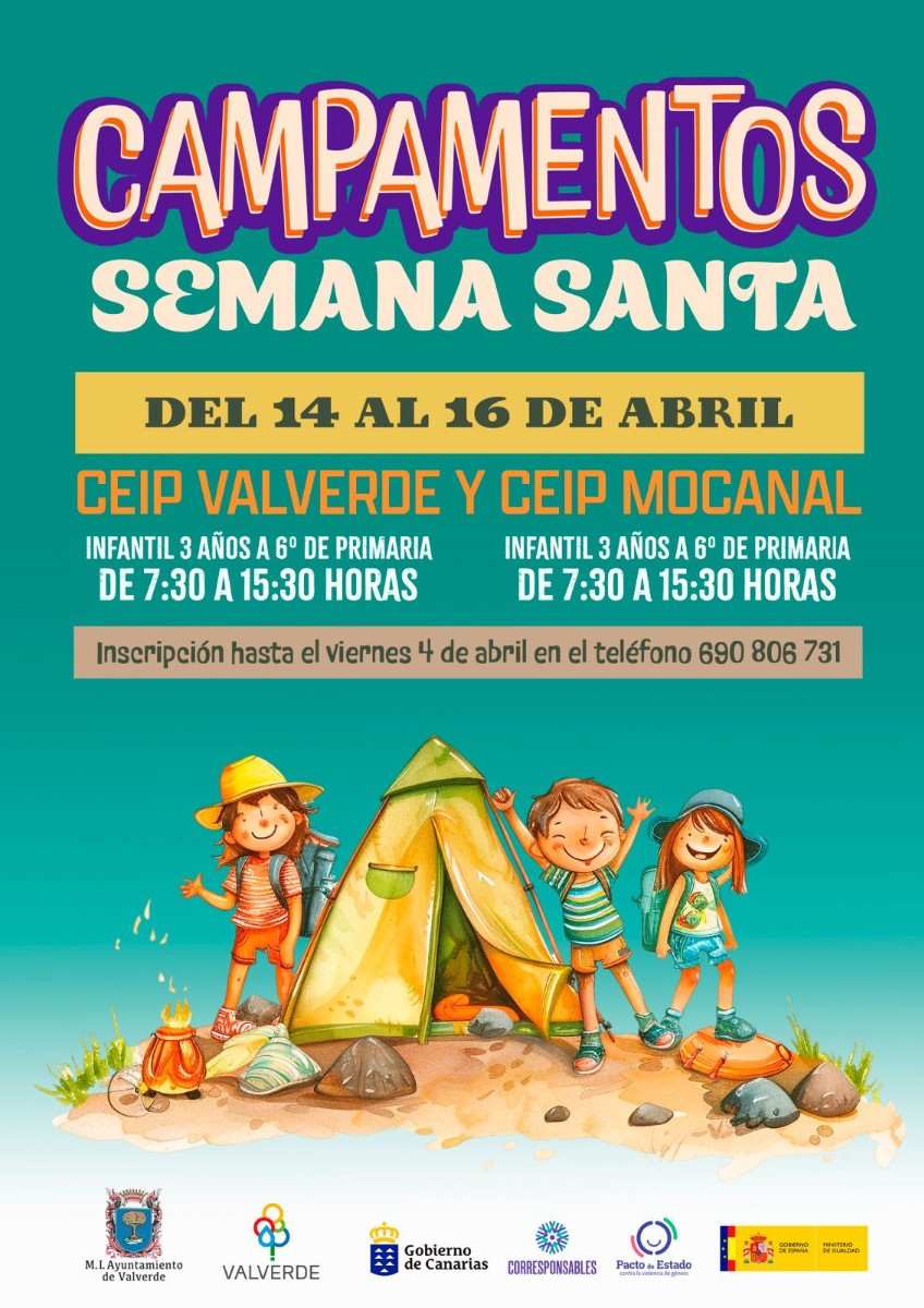 Del 14 al 16 de abril, el CEIP Valverde y el CEIP Mocanal, en horario de 7:30 a 15:30 horas, para niños y niñas escolarizados de Infantil y Primaria (3 a 6 años), con el fin de favorecer la conciliación en familias del municipio.