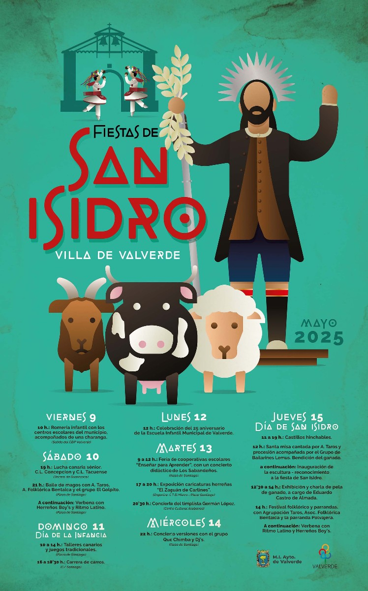 El programa incluye la tradicional romería protagonizada por los escolares del municipio, lucha canaria, talleres de juegos tradicionales, conciertos, feria de cooperativas escolares, bailes y la gran celebración del Día de San Isidro con misa, procesión y bendición del ganado.