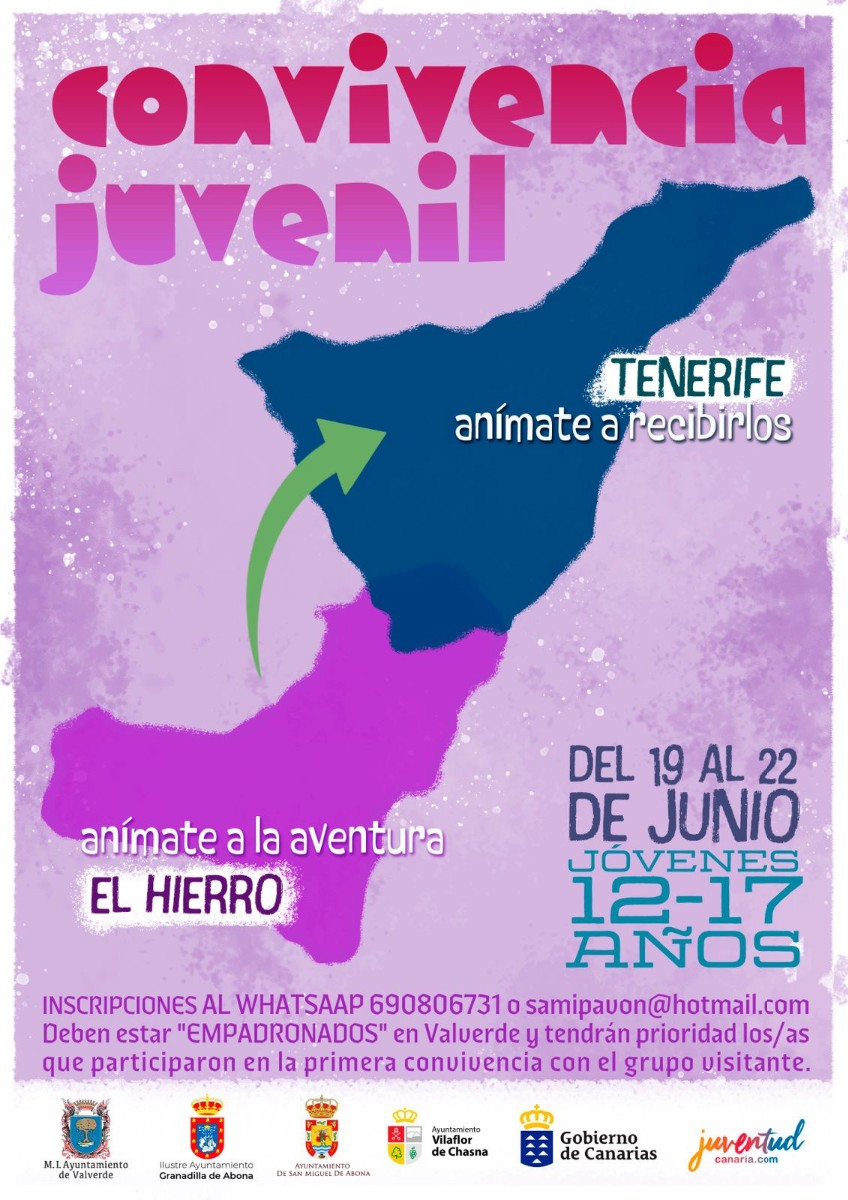 Del 19 al 22 de junio, una nueva edición de la Convivencia Juvenil entre jóvenes de Tenerife y El Hierro, dirigida a jóvenes de entre 12 y 17 años que participaran en un intercambio que busca reforzar los lazos entre jóvenes de ambas islas.