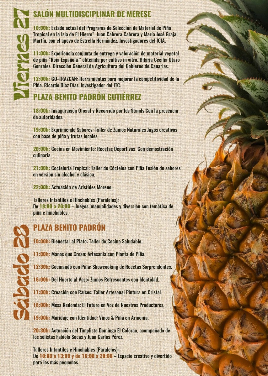 La feria contará con actividades lúdicas, empresariales y gastronómicas, así como otras actividades formativas y de divulgación dirigida a los agricultores, técnicos y productores de piña tropical y al público en general.