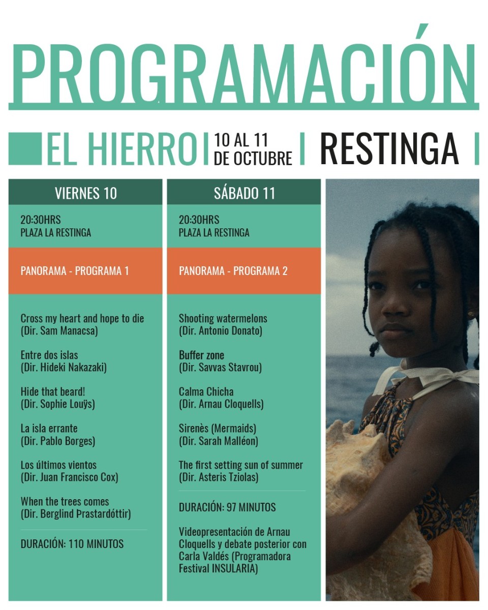 El viernes 10 de octubre, a las 19:00, se proyectarán las películas 1815 (Neil Boyle), You Land (Debora Maité), Go Home (Razan Madhoon), The Bayview (Daniel Cook), Care (Jagoda Tlok) y Their Accounts (Hannah Hunter). Tras las proyecciones, se celebrará un debate con Cristina Ward (Head of Arts British Council - Spain) y Carla Valdés León (programadora del Festival INSULARIA), en el que se abordarán los puntos de encuentro entre el cine británico y el cine insular de habla hispana.