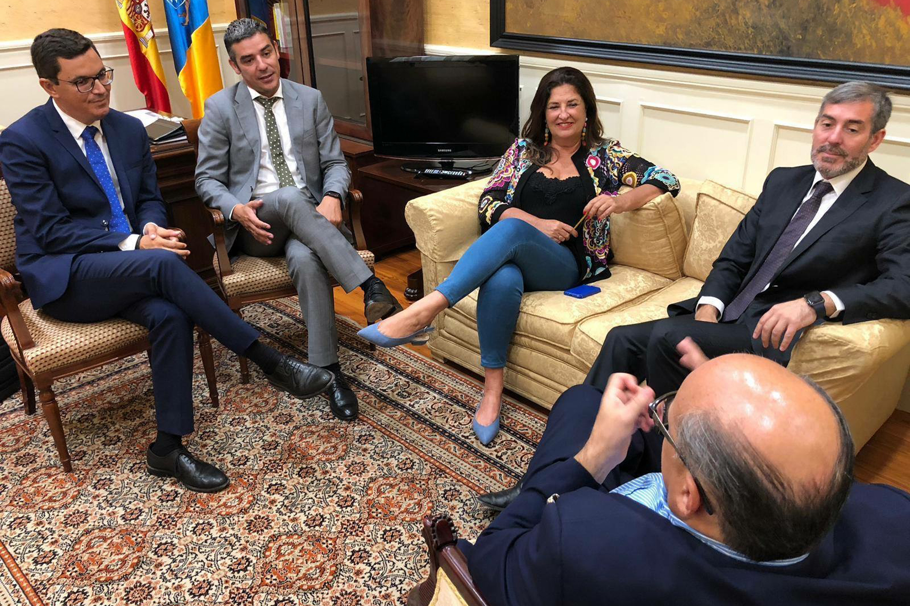 Redacción/La presidenta del Cabildo de El Hierro, Belén Allende, ha mantenido hoy miércoles, 26 de septiembre, un encuentro de trabajo con el presidente del Ejecutivo autonómico, Fernando Clavijo, así como con responsables de las áreas de Transportes, Agricultura, Ganadería Pesca y Aguas y Justicia del Gobierno, para analizar el planteamiento que se llevará a cabo ante Bruselas para dar continuidad a las Obligaciones de Servicio Público Marítimo (OSP) entre El Hierro y Tenerife a partir de octubre de 2019, cuando finaliza su vigencia.