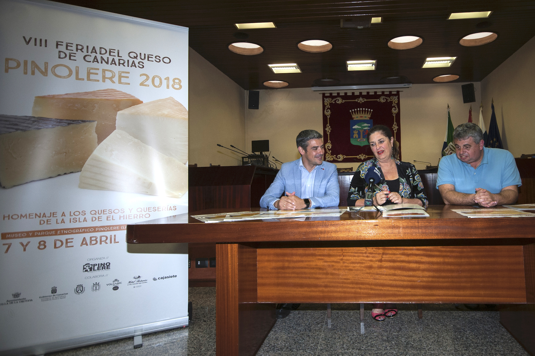Redacción/El consejero de Agricultura, Ganadería, Pesca y Aguas del Gobierno de Canarias, Narvay Quintero, la presidenta del Cabildo de El Hierro, Belén Allende, y el gerente de la Asociación Cultural Pinolere, Jesús García, presentaron hoy viernes, 23 de marzo, en Valverde la cartelería de la VII Feria del Queso de Canarias Pinolere 2018, que este año rinde homenaje a los quesos y queserías de la isla de El Hierro.