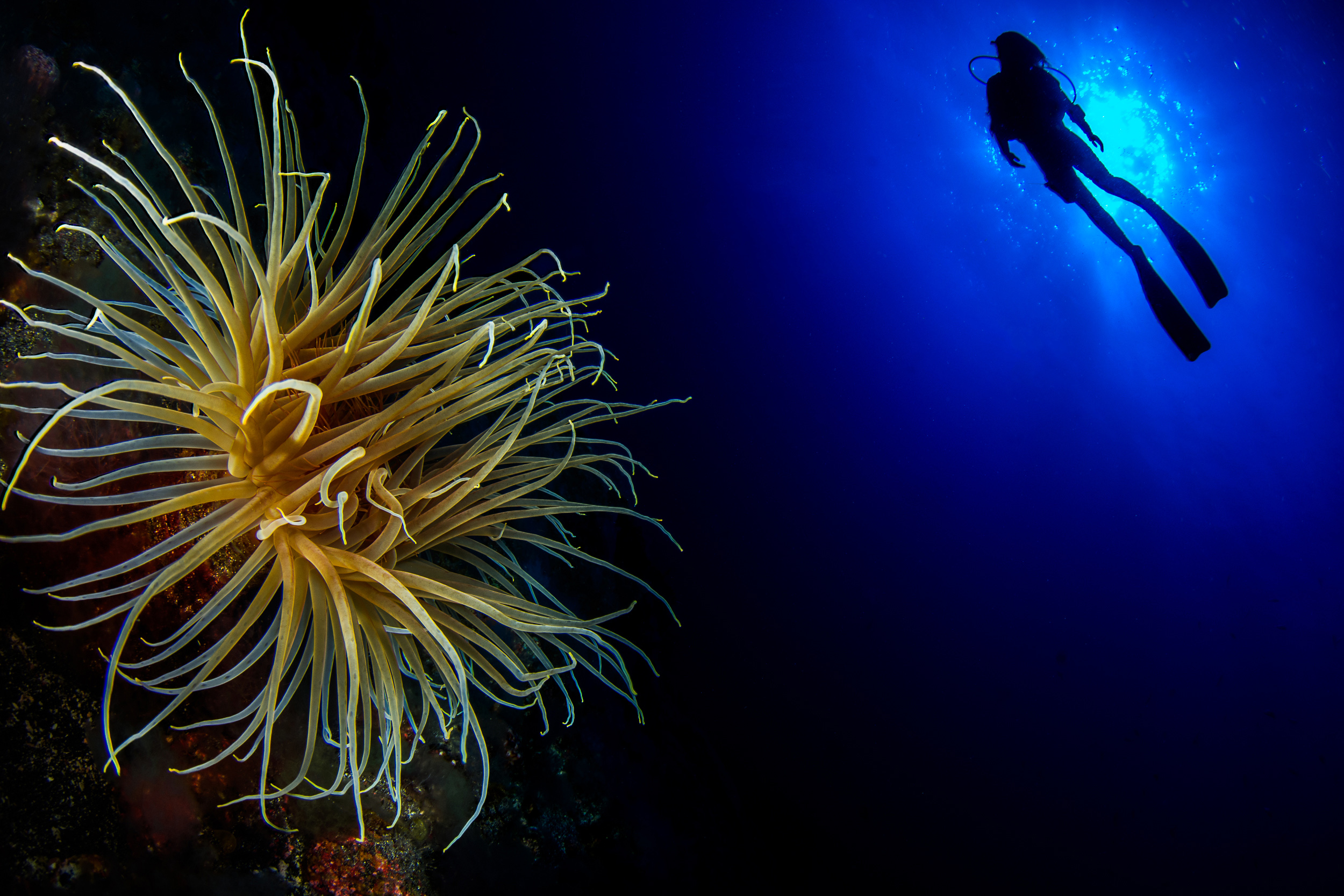 Redacción/La espectacular fotografía de un cerianto en primer plano con un buceador a contraluz tomada durante las inmersiones realizadas con el Centro de Buceo El Hierro, colaborador oficial del Open Fotosub Online, obra del fotógrafo submarino Julio Díaz San Gil se ha llevado este pasado mes de Agosto el premio a la mejor fotografía del mes en el I Open Fosotub Online “El Hierro, un Puerto de Vida”.