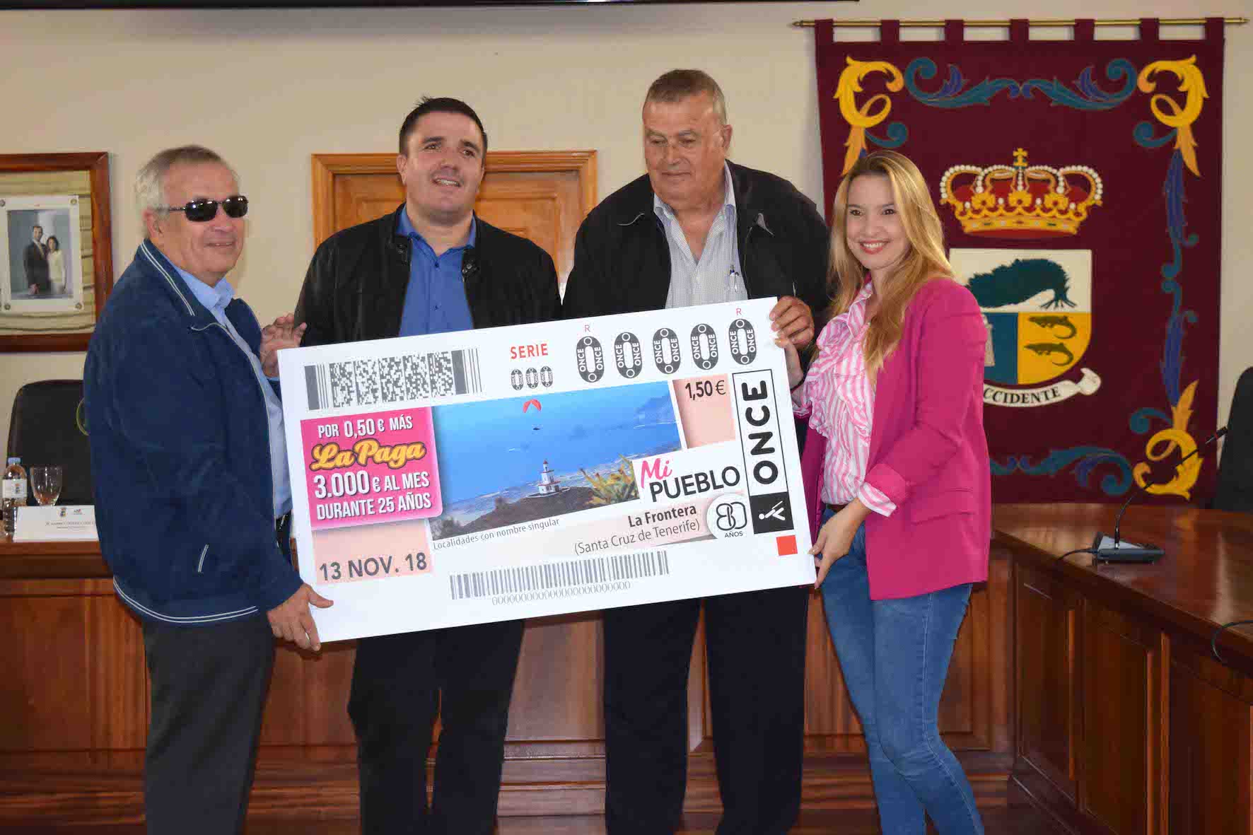 Ayer precisamente, el alcalde del Municipio, Pedro Miguel Ángel Acosta y la concejala de Turismo, Miriam del Pino Moreno recibían de manos del director de la ONCE en Santa Cruz de Tenerife, Andrés Guillén y del vicepresidente de su Consejo Territorial, Cristóbal Manuel Amaro, el boleto dedicado al municipio y perteneciente a la serie ‘Mi pueblo’ que recoge localidades con nombres singulares.