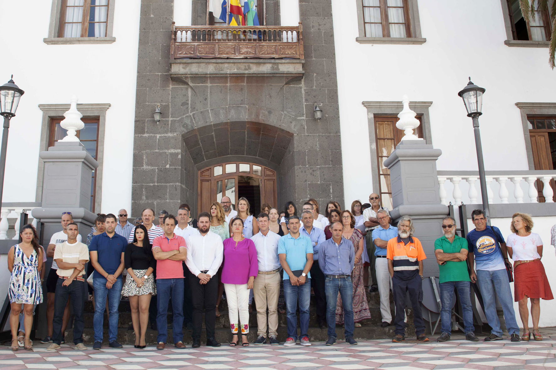 Cargos públicos, personal de las instituciones y publico en general, junto a la presidenta del Cabildo de El Hierro, Belén Allende, el consejero de Agricultura del Gobierno de Canarias, Narvay Quintero, el diputado de CC por El Hierro, David Cabrera, y el senador de CC, Pablo Rodríguez, se sumaron así a las muestras de apoyo y solidaridad que se están llevando a cabo en toda España en señal de duelo y repulsa por las pérdidas humanas causadas por el ataque terrorista ocurrido ayer.