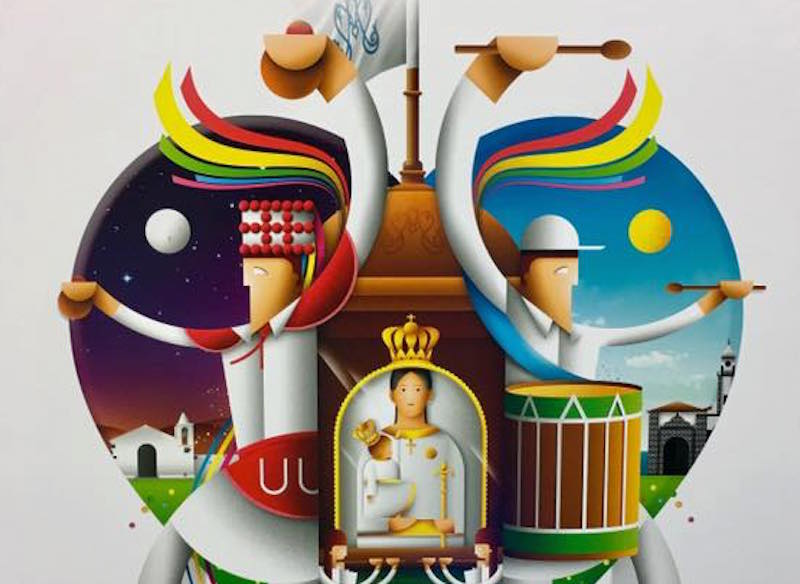 El autor murciano ha querido reflejar en la obra la esencia de la fiesta por antonomasia de El Hierro. “Este proyecto está ejecutado al más puro estilo Art Decó de los años 20, disponiendo como eje principal a la Virgen de los Reyes, englobando todo el conjunto de la ilustración mediante un gran corazón, símbolo del amor y la devoción por la Virgen”, destacó Rubén Lucas García. “Además, se incluyen diferentes peculiaridades de la fiesta como son los bailarines, los tambores o los pitos envueltos en paisajes representativos de la Isla”, destaca el autor.