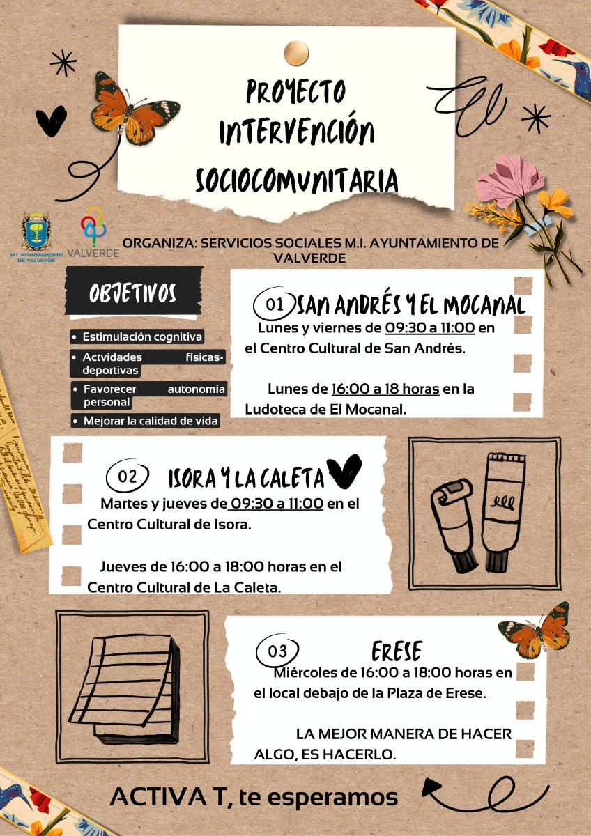 Las actividades se desarrollarán los lunes y viernes de 9:30 a 11:00 horas, en el Centro Cultural de San Andrés; los lunes de 16:00 a 18:00 horas, en la Ludoteca de El Mocanal; martes y jueves de 9:30 a 11:00 horas, en el Centro Cultural de Isora; jueves de 16:00 a 18:00 horas, en el Centro Cultural de La Caleta; miércoles de 16:00 a 18:00 horas, en el local de la plaza de Erese.