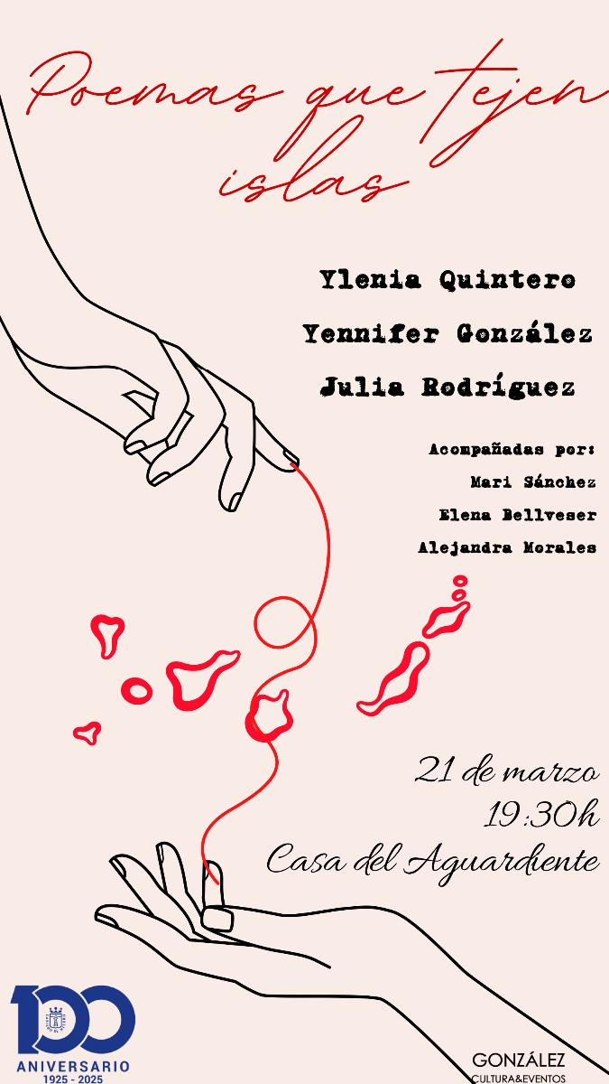 Con la interpretación de las actrices herreñas Ylenia Quintero y Yennifer González, y la voz y música de Julia Rodríguez, este evento nos sumergirá en la obra de poetas herreños como María Padrón, Alcira Padrón, Carmen González, Armando Hernández, José Padrón Machín, Valentín Padrón, María Dolores Morales y Antonio del Castillo.
