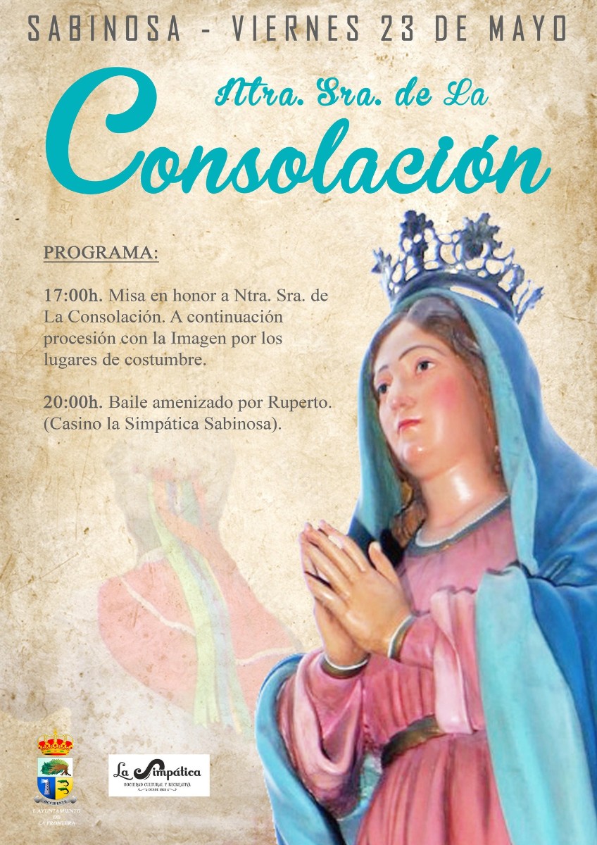 Los actos darán comienzo con la venia de los bailarines de La Virgen, en la iglesia del pueblo a las 16:45 horas, procesión por los lugares de costumbre al término de la Santa Misa; y baile en El Casino de Sabinosa a partir de las 20:00 horas.