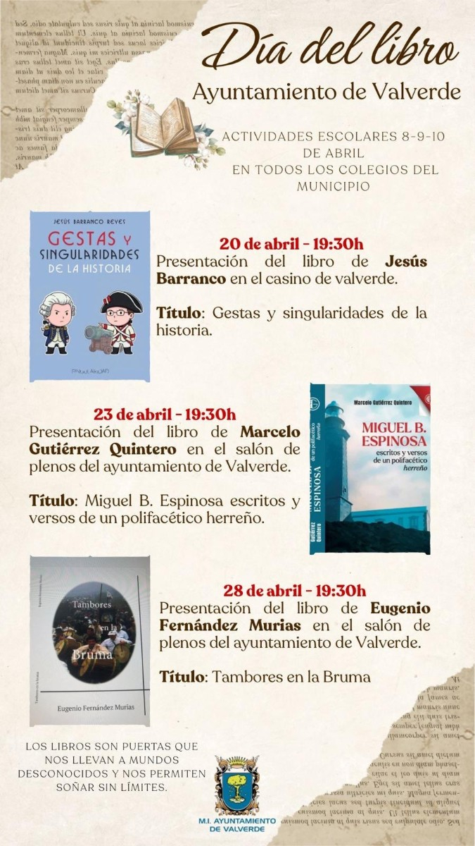 El jueves 23 de abril, a las 19:30 horas, se llevará a cabo la presentación de la obra literaria “Miguel B. Espinosa: escritos y versos de un polifacético herreño”, de Marcelo Gutiérrez Quintero, en el Salón de Plenos del Ayuntamiento de Valverde.