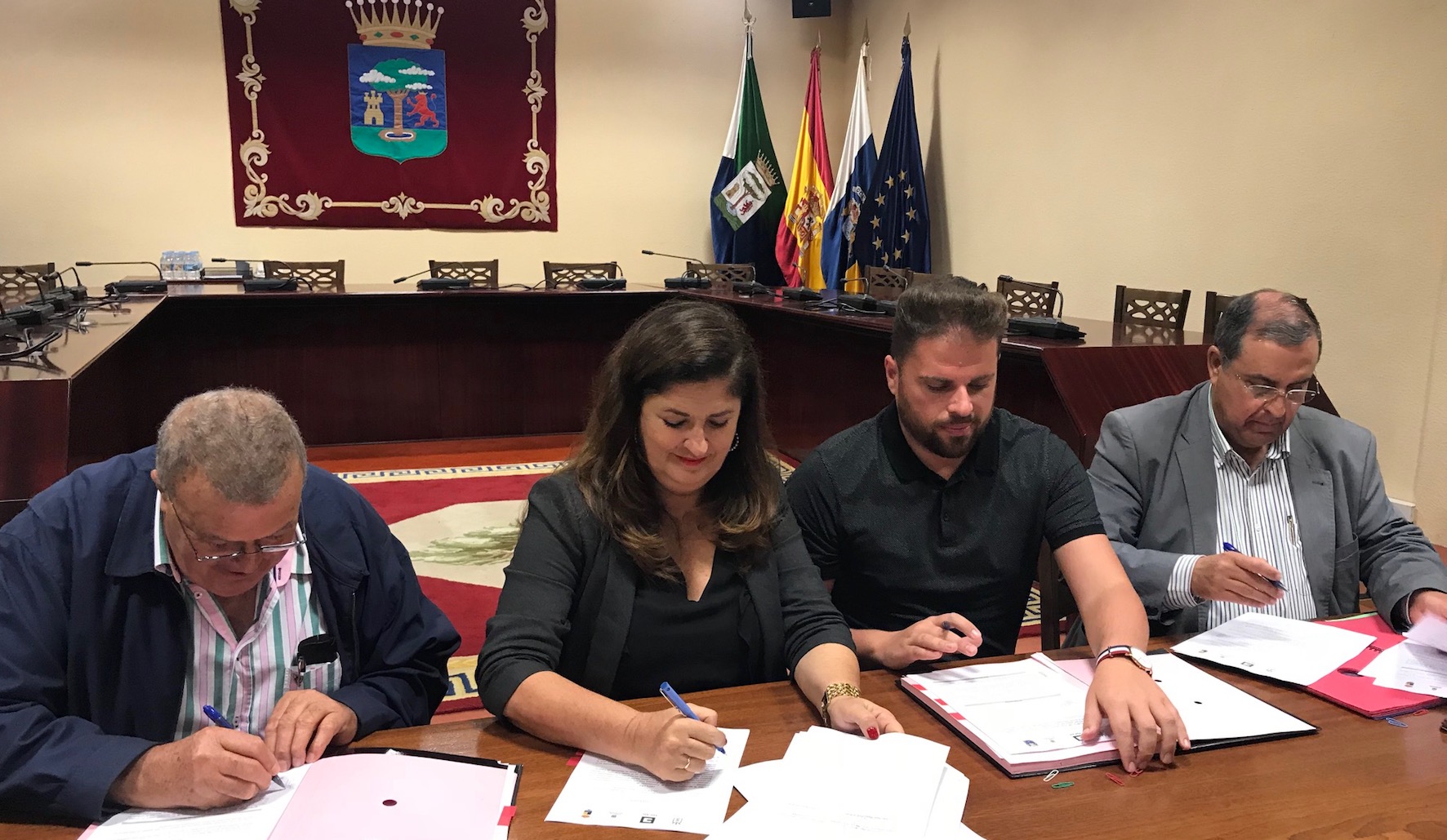 Redacción/La presidenta del Cabildo de El Hierro, Belén Allende, y los alcaldes de Valverde, La Frontera y El Pinar de El Hierro, Daniel Morales, Pedro Miguel Acosta y Juan Miguel Padrón, respectivamente, han rubricado hoy jueves, 30 de noviembre, en el Salón de Plenos de la Institución herreña, el convenio marco de colaboración con el Cabildo herreño para el desarrollo del Programa FDCAN, que permitirá iniciar los trámites definitivos para contar con los fondos de desarrollo local previstos para la ejecución de obras en los tres municipios herreños con cargo al Fondo para el Desarrollo de Canarias.