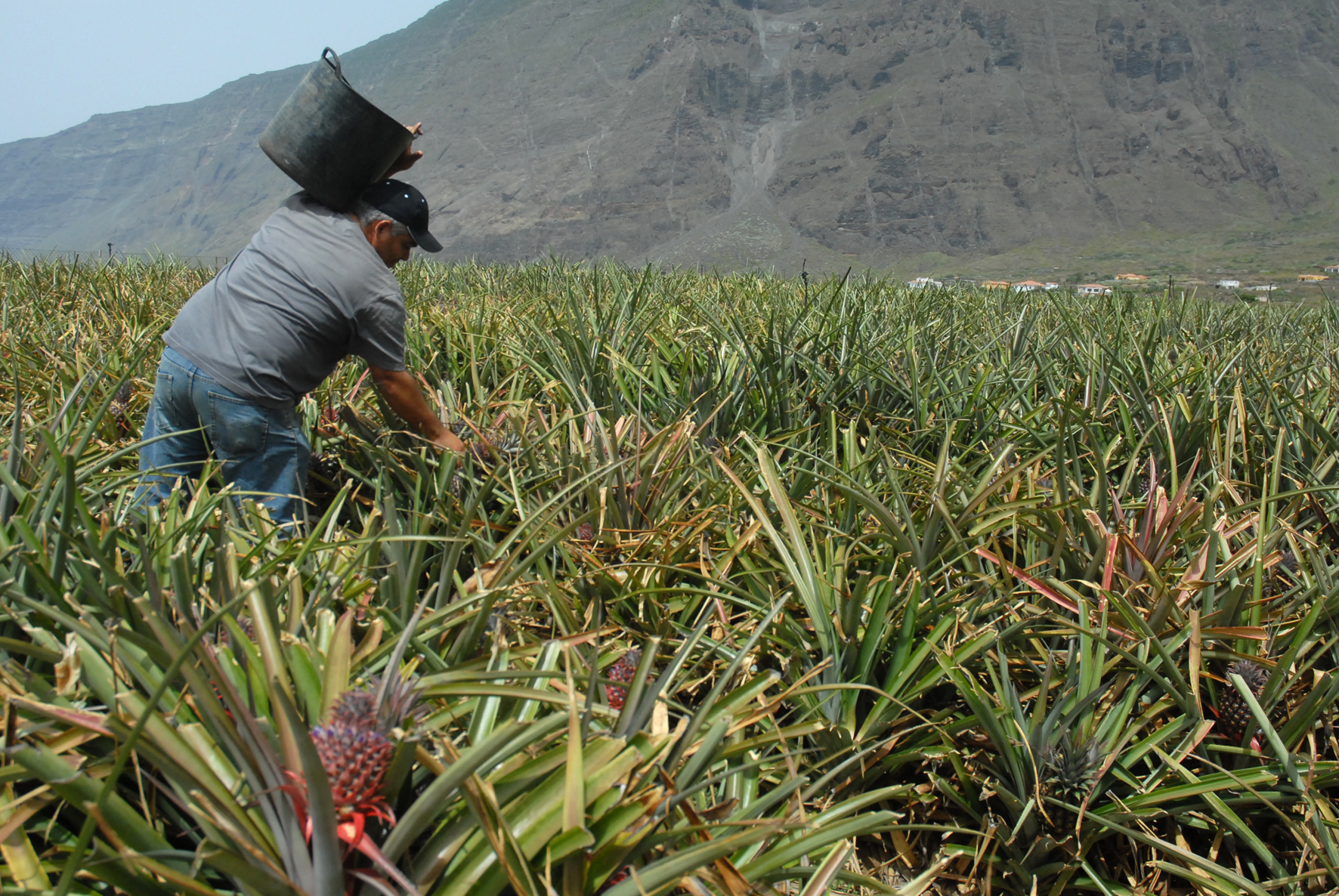 La piña tropical continúa siendo el cultivo intensivo de mayor calado en El Hierro, centrado casi en su totalidad en el Valle de El Golfo, en el municipio de La Frontera. Según datos de la Cooperativa del Campo de Frontera, la producción de piña tropical en 2015 en El Hierro fue de 714.484 kilos, la mayor parte de categoría extra (341.560 kilos) a un precio medio de 2,12 euros el kilo. Mientras que en lo que va de este 2016, hasta el pasado mes de agosto, se han producido un total de 453.143 kilos.