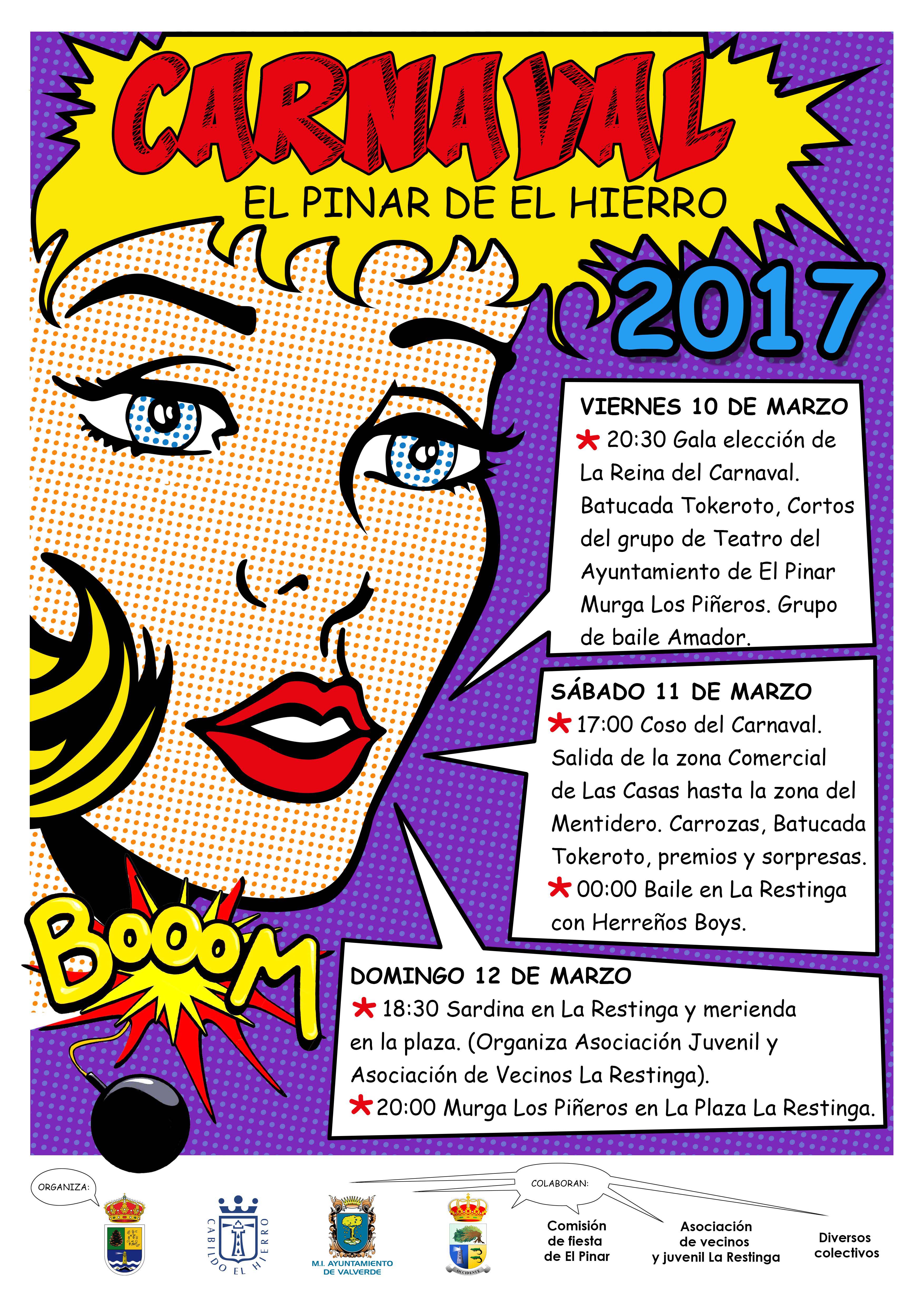 Redacción/El programa del carnaval, organizado por el Ayuntamiento de El Pinar, comenzará el próximo viernes, 10 de marzo, con la celebración de la Gala de Elección de la Reina, un certamen que comenzará a las 20:30 horas. Las fiestas se prolongarán durante todo el fin de semana en el municipio.