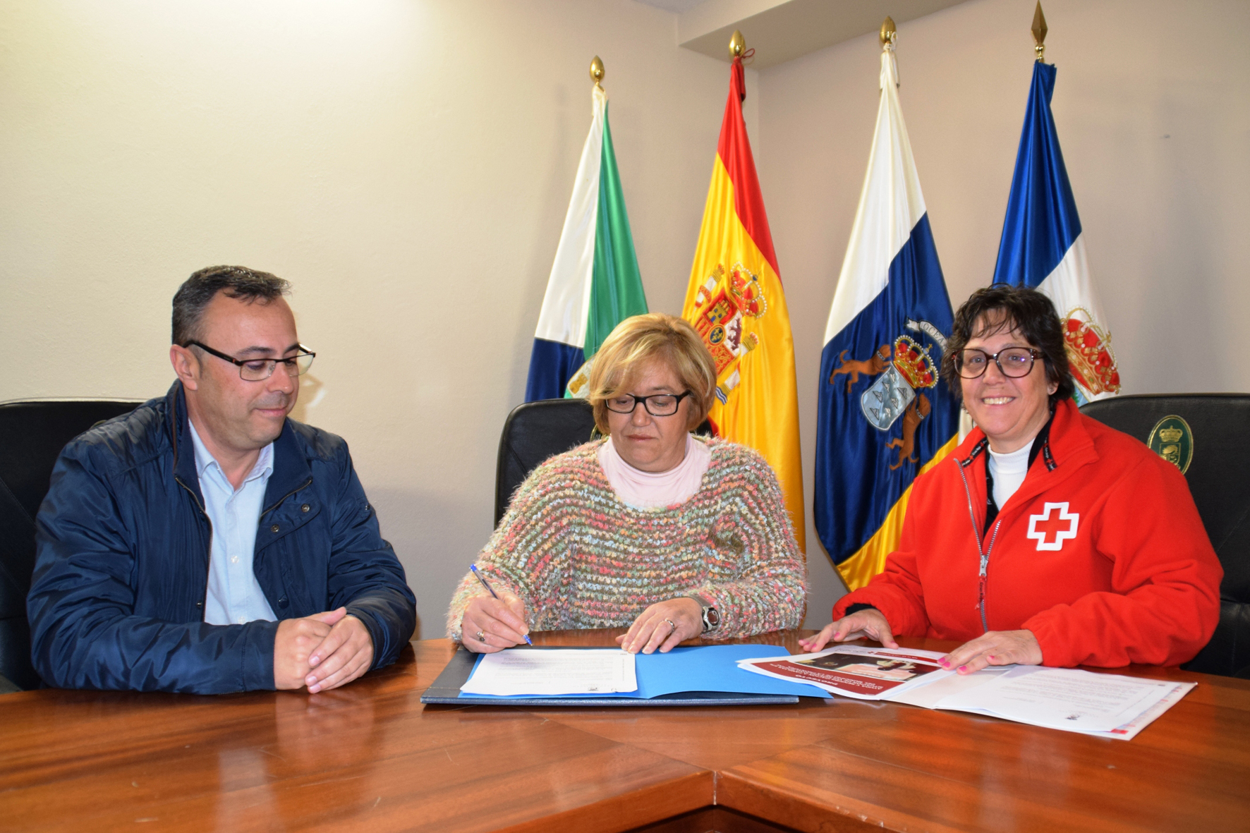 De la firma de este convenio han formado parte la primera teniente alcalde, Susana Pérez García, la presidenta insular de Cruz Roja El Hierro, Luisa Mª Anceaume Chinea y el coordinador insular, Alexis Ramos, quienes se han agradecido mutuamente la labor de cooperación que realizan ambas instituciones.