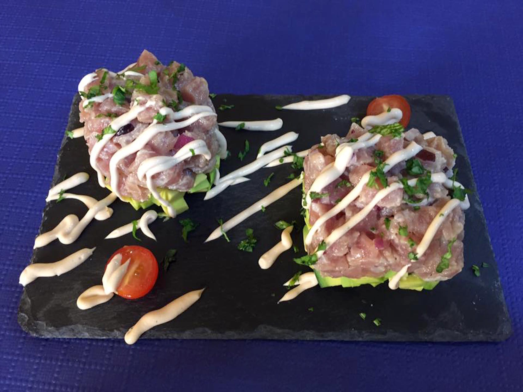Las tres propuestas fusionan productos de la tierra, como la piña, con otros del mar, como el peto, dado que el restaurante está situado en una localidad marinera.