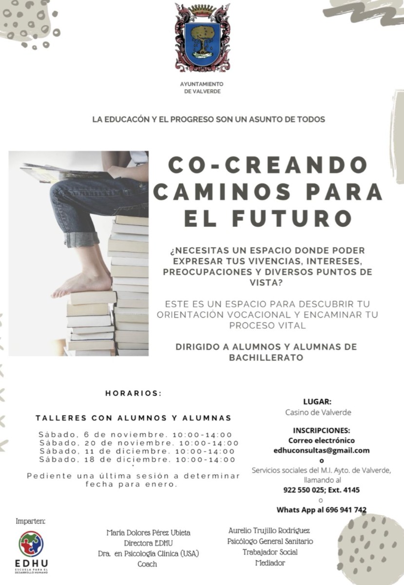 Los talleres presenciales dirigidos al alumnado de Bachiller, empadronado en este municipio, que se realizarán durante 4 sábados, en los cuales les ayudarán a identificar sus capacidades e inquietudes, con el fin de que el alumnado de Bachiller potencie su vocación personal y profesional.