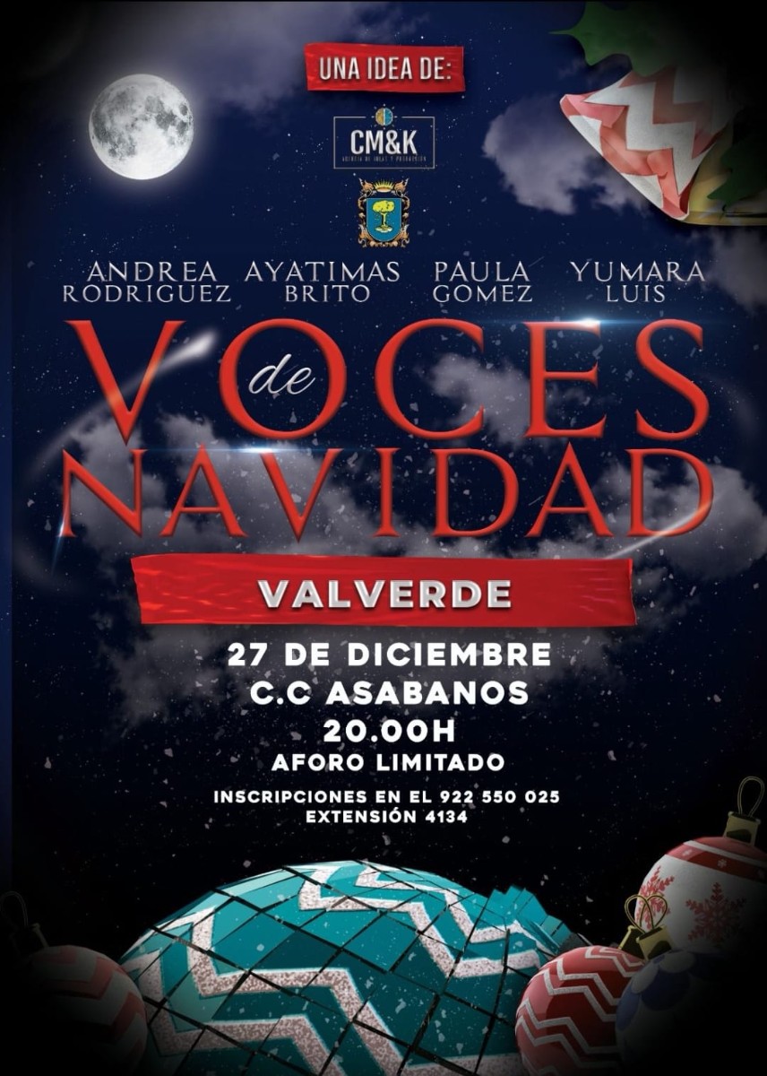 El Ayuntamiento de Valverde presenta “Voces de navidad”, un concierto que tendrá lugar el lunes 27 de diciembre a las 20h, en el C.C Asabanos.