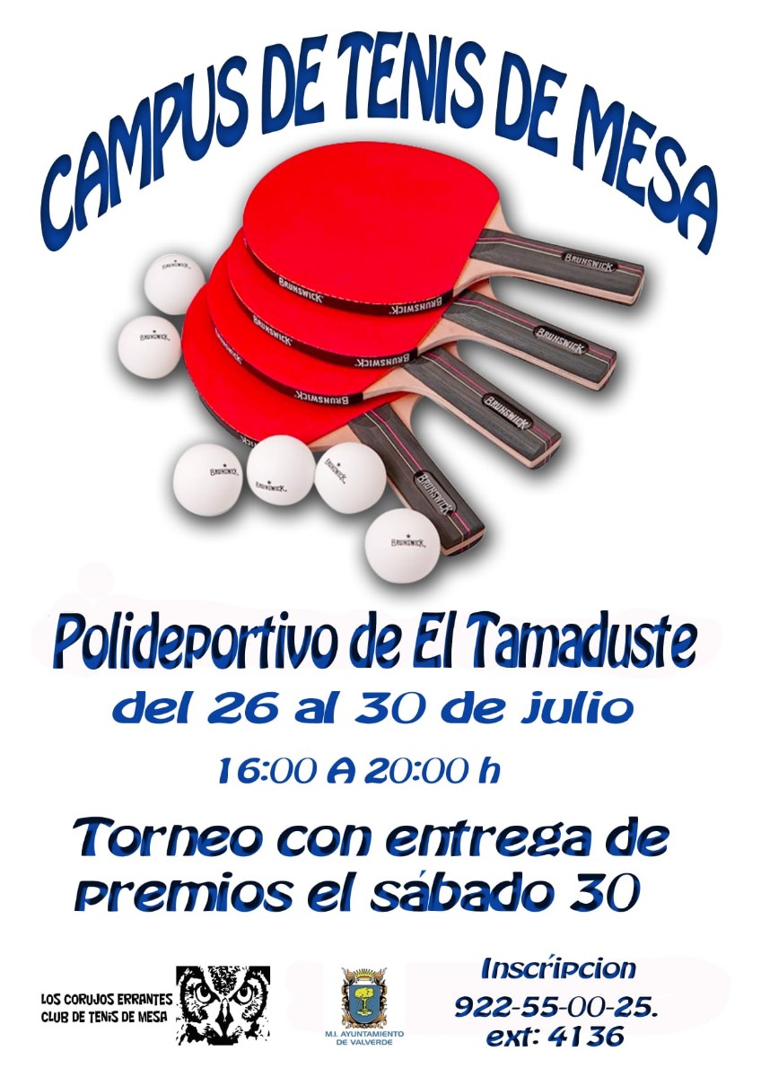 El polideportivo de El Tamaduste del 26 al 30 de julio, impartido por Los Corujos Errantes Club de Tenis de Mesa.