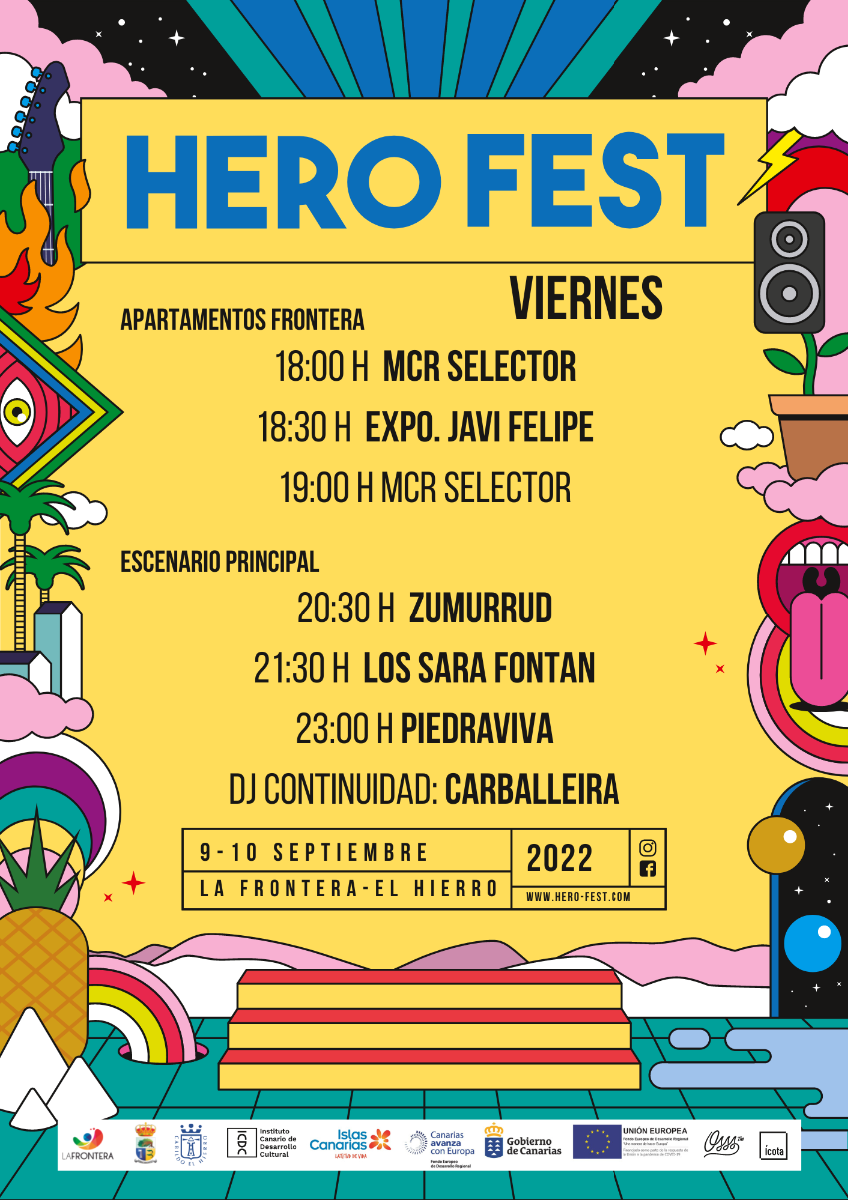 El HeroFest El Hierro esta organizado con el apoyo de Ayuntamiento de La Frontera, Cabildo El Hierro, el Instituto Canario de Desarrollo Cultural (ICDC) y Promotur.