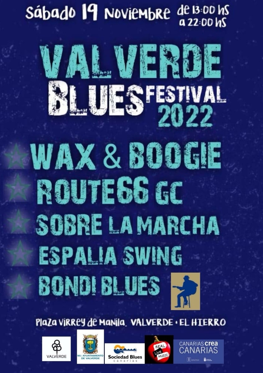El Festival Valverde Blues Festival contará con la participación de la banda barcelonesa de Wax & Boogie, y los grupos isleños Route 66 GC y Sobre la Marcha. El dúo de baile Spalia Swing se encargará de amenizar con su ritmo y coreografías al público asistente, así como la actuación de el Dj Luis “Bondi Blues”, con una selección del mejor Rhythm'n'Blues desde el inicio hasta la finalización del evento.