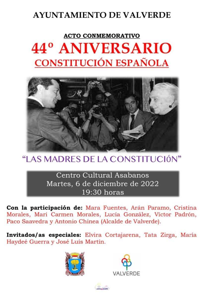 El Ayuntamiento de Valverde les invita al acto del 44 aniversario de La Constitución Española, que tendrá lugar mañana día 6 a las 19:30 horas, en el C.C Asabanos.
