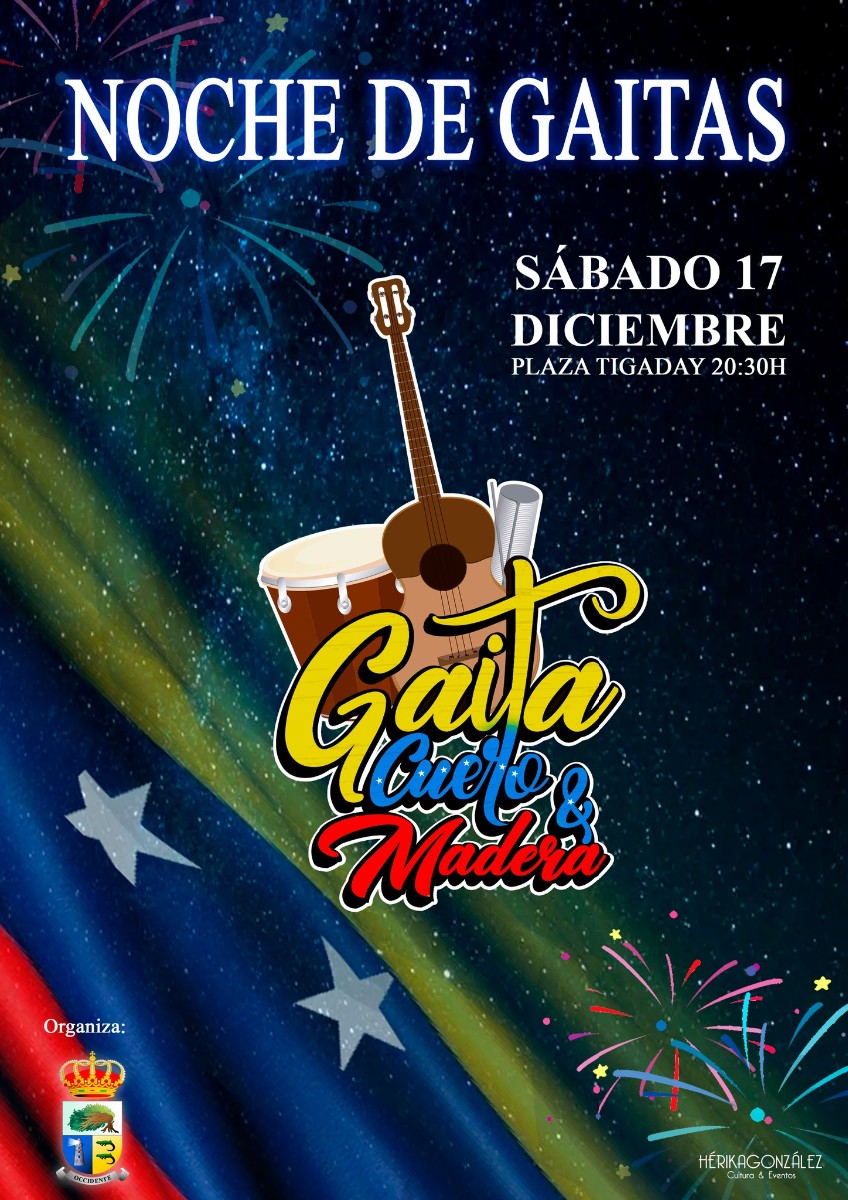 Sábado, 17 de diciembre con un concierto de gaitas venezolanas a cargo del grupo “Cuero y Tambor”, en la plaza vieja de Tigaday.