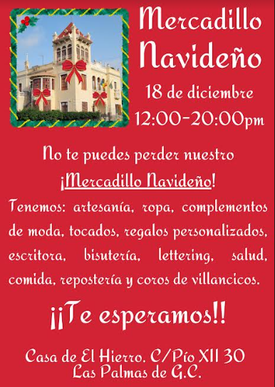 Quesadillas, queso, vino, mermeladas, miel y otros productos podrán ser desgastados y adquiridos por todos los que se acerquen a la sede de la Casa Cultural y Recreativa de El Hierro en Las Palmas de Gran Canaria, domingo 18 de diciembre de 12:00 a 20:00 horas.