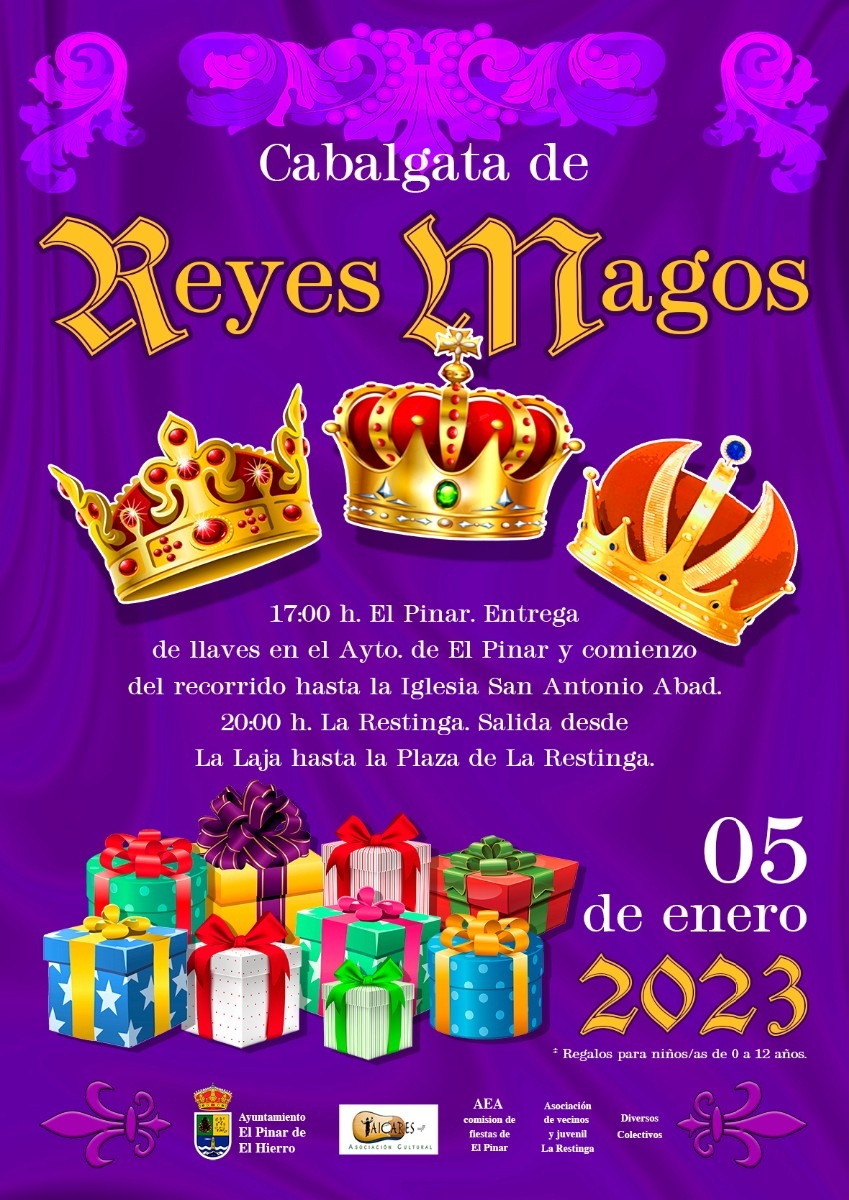 Sus Majestades de Oriente le tienen guardado un regalo educativo a cada niño/a de 0 hasta 12 años, que lo podrán recoger o en la cabalgata de El Pinar o de La Restinga.