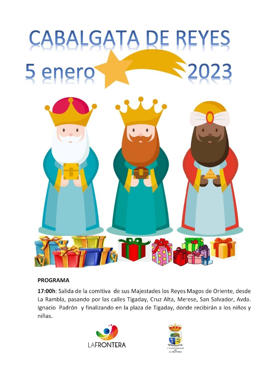 A las 17:00 horas, Salida de la comitiva de sus Majestades los Reyes Magos de Oriente, desde La Rambla, pasando por las calles Tigaday, Cruz Alta, Merese, San Salvador, Avda. Ignacio Padrón y finalizando en la plaza de Tigaday, donde recibirán a los niños y niñas.