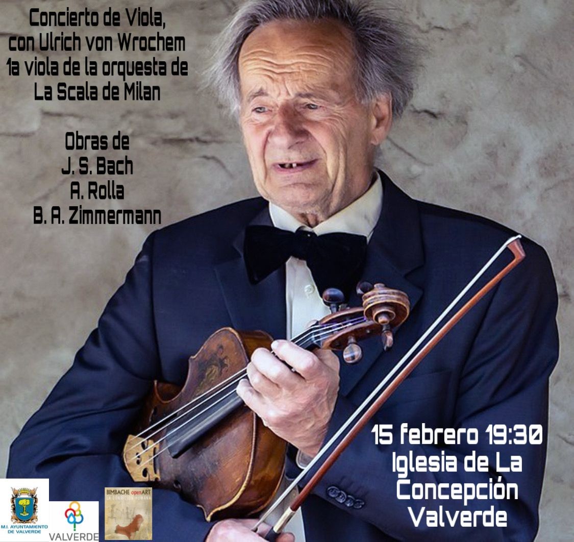 El Bimbache Open Art con la colaboración del Ayuntamiento de Valverde, ofrecen un recital de Viola clásica a cargo de Ulrich von Wrochem, músico que fuera violista principal en la Ópera de Berlín, la Radio Bávara y el Teatro La Scala de Milán, entre otros. La actuación tendrá lugar el próximo 15 de febrero, a las 19:30 horas, en la iglesia de la Concepción de Valverde.