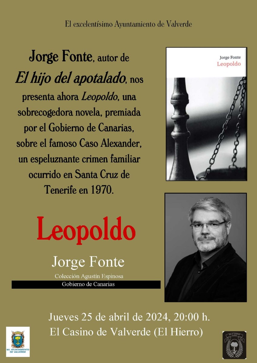 Jorge Fonte, autor de El hijo del apotalado, presenta ahora Leopoldo, una sobrecogedora novela, premiada por el Gobierno de Canarias, sobre el famoso Caso Alexander, un espeluznante crimen familiar ocurrido en Santa Cruz de Tenerife en 1970.