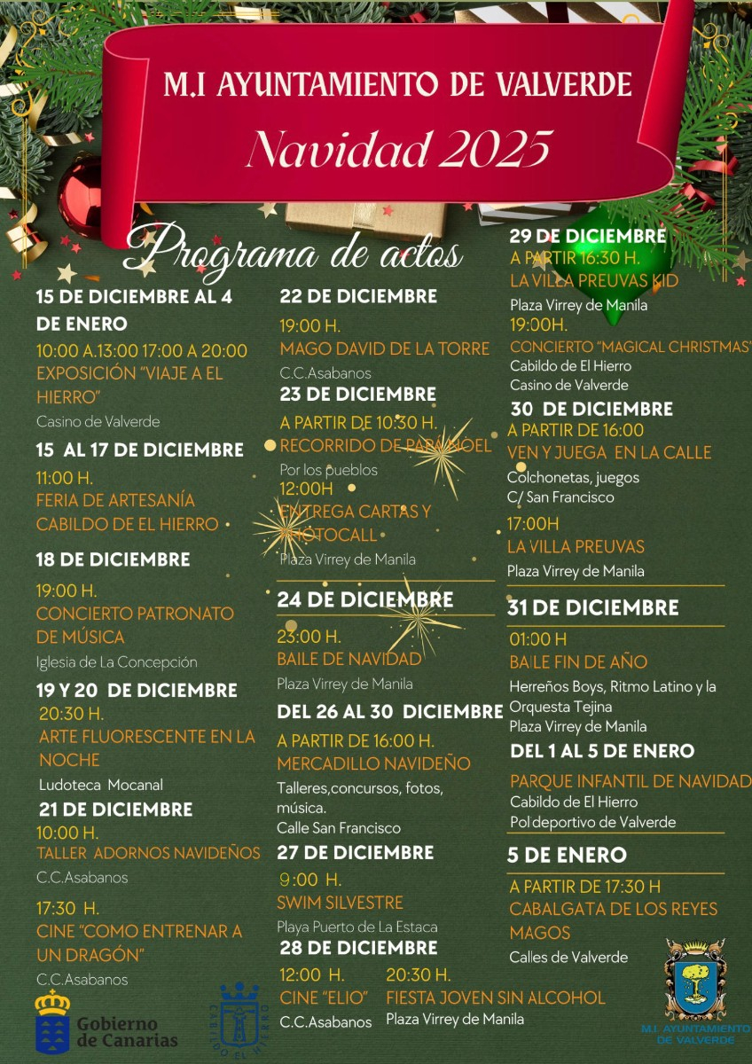 El programa contempla la celebración de exposiciones, ferias de artesanía, talleres infantiles, cine, conciertos, mercadillo navideño, actividades juveniles, eventos deportivos y las tradicionales celebraciones de Nochebuena y Fin de Año. También incluye el recorrido de Papá Noel, la Swim Silvestre, el Parque Infantil de Navidad y la Cabalgata de los Reyes Magos.